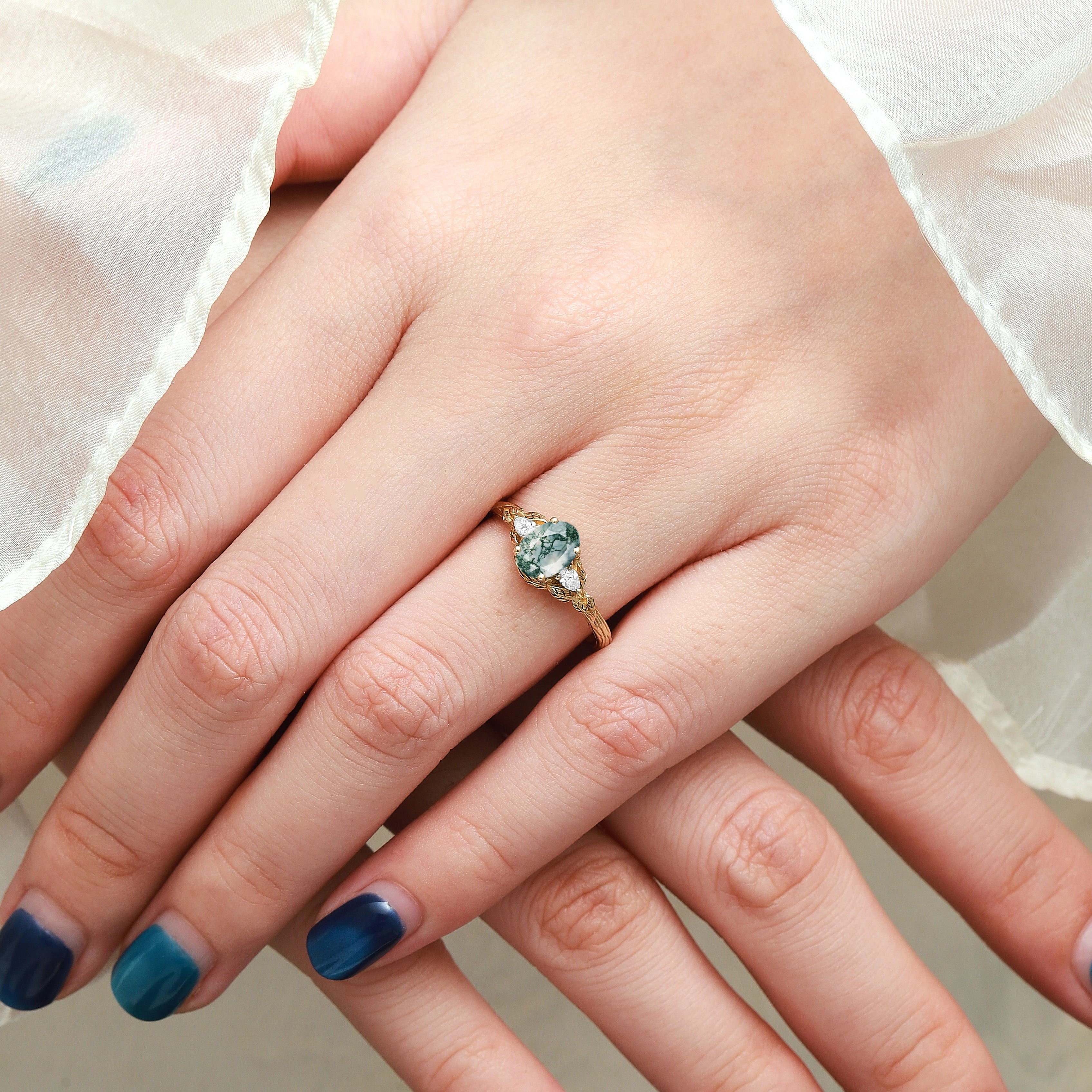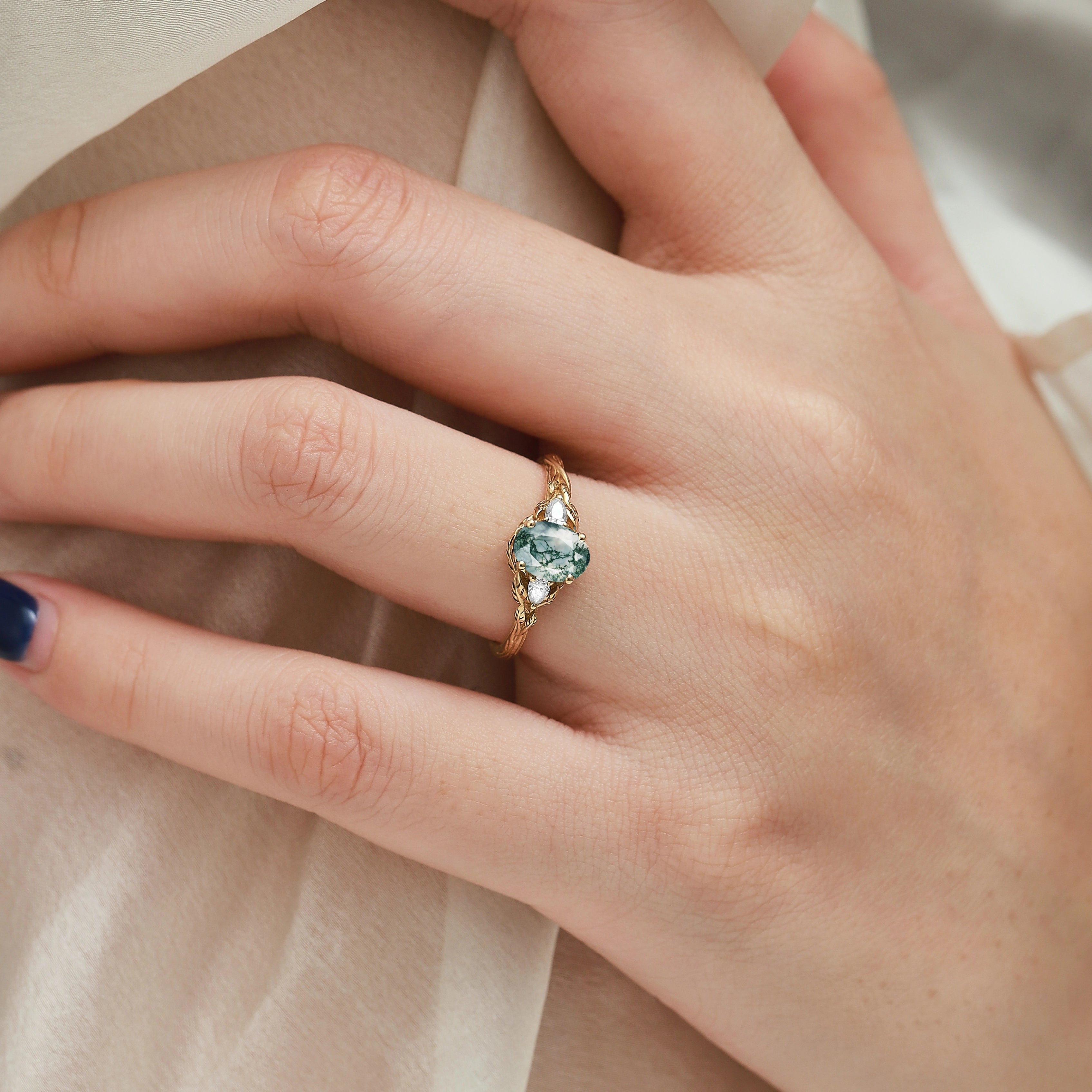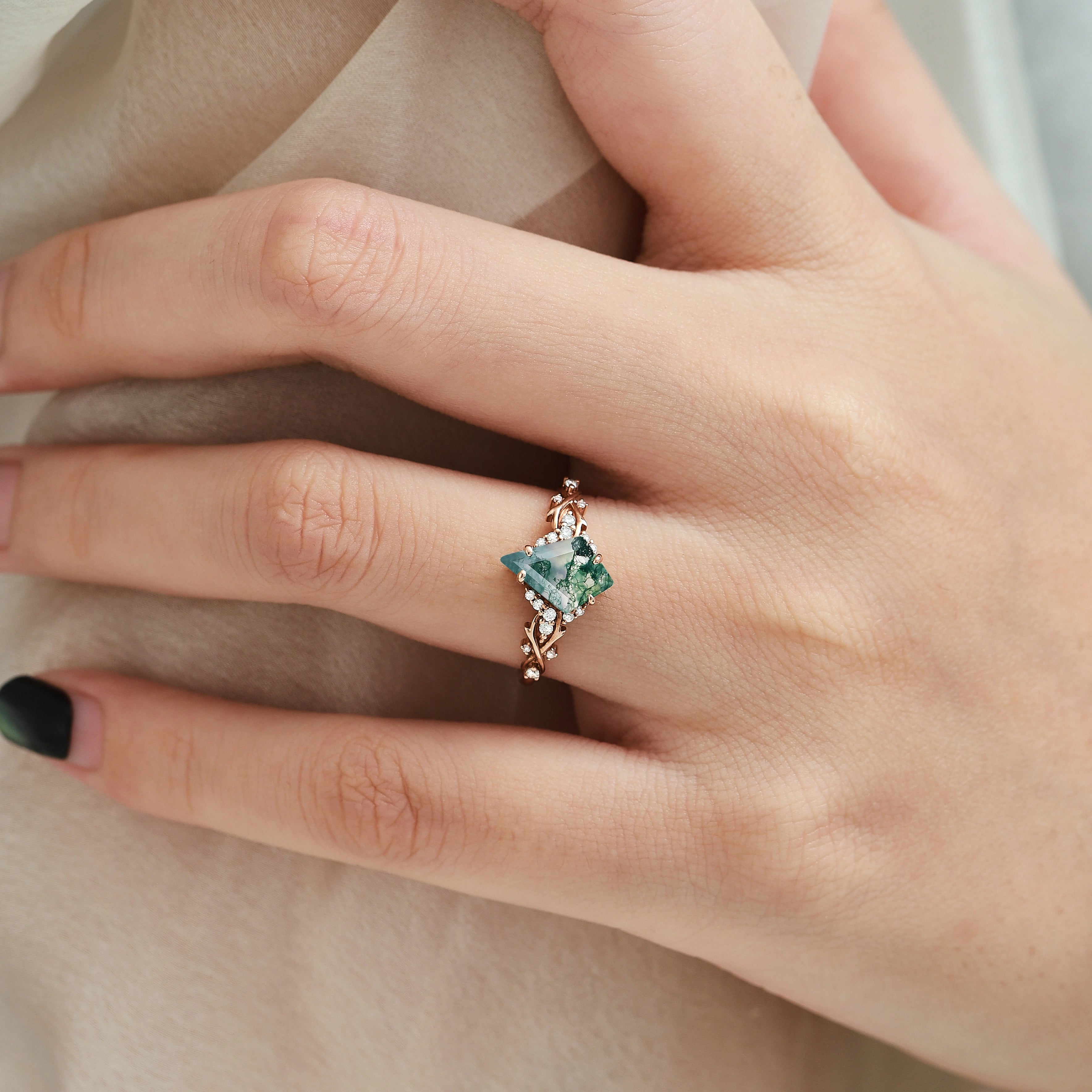 Beautiful engagement ring! I change the center stone to moss agate. Got updates along the way, excellent communication and got a great reaction from my girlfriend/fiancee which was important. Thank you very much!