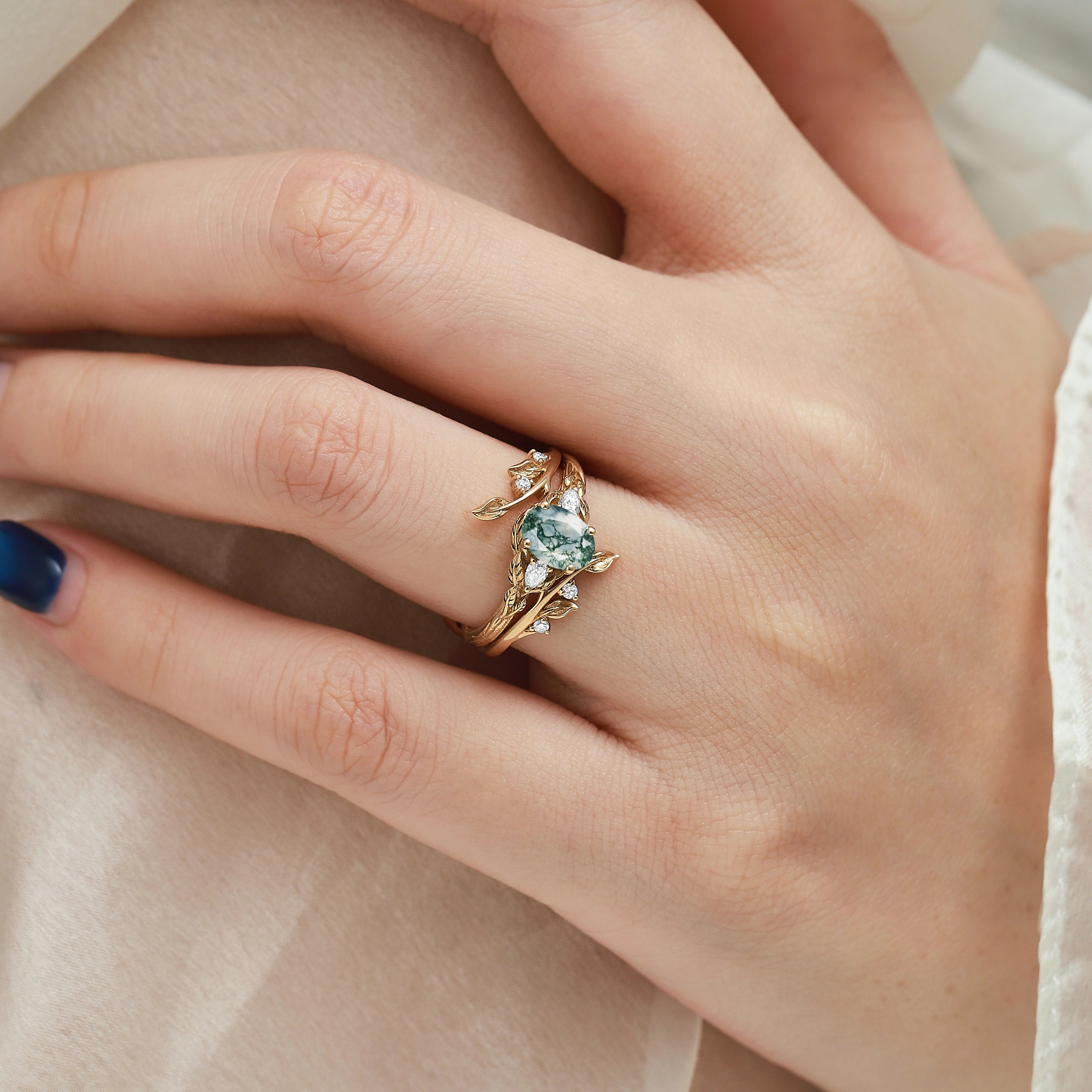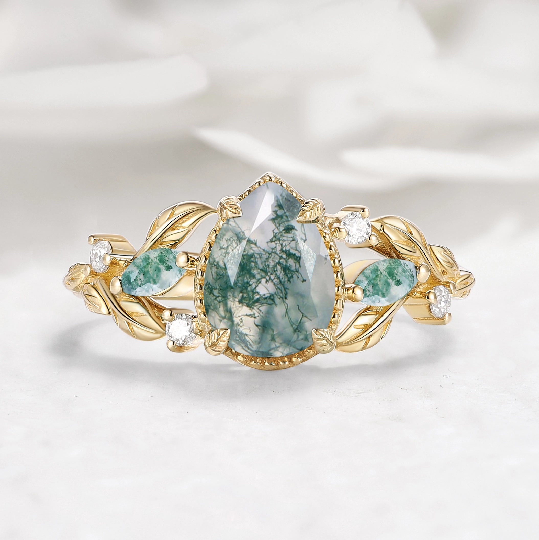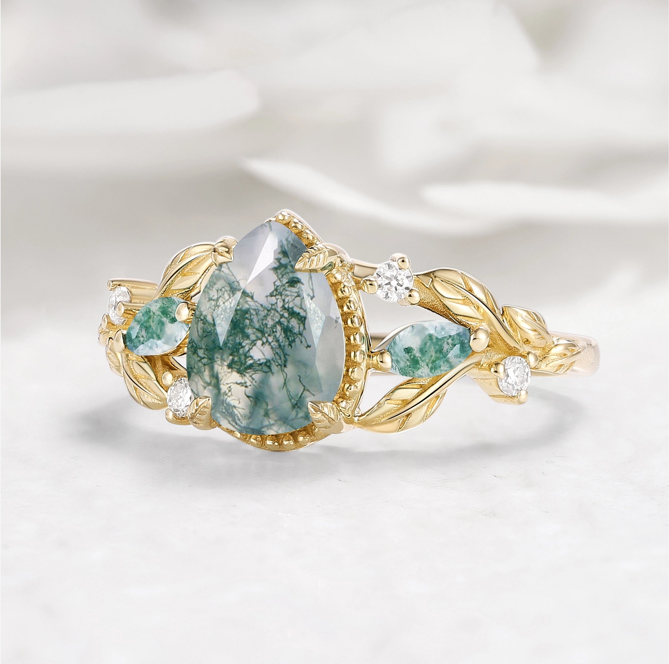 Beautiful engagement ring! I change the center stone to moss agate. Got updates along the way, excellent communication and got a great reaction from my girlfriend/fiancee which was important. Thank you very much!