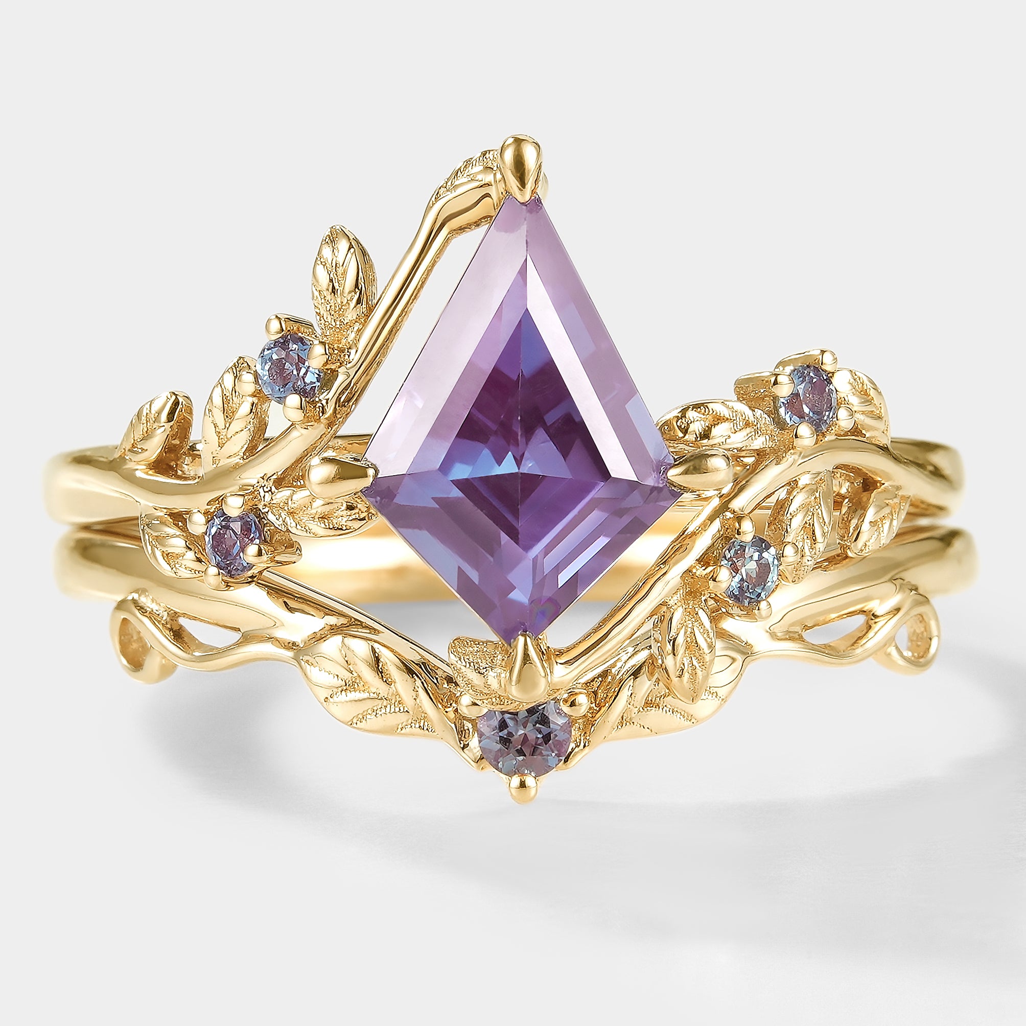 Kite Cut Alexandrite Bridal Set With Leaf - Alder