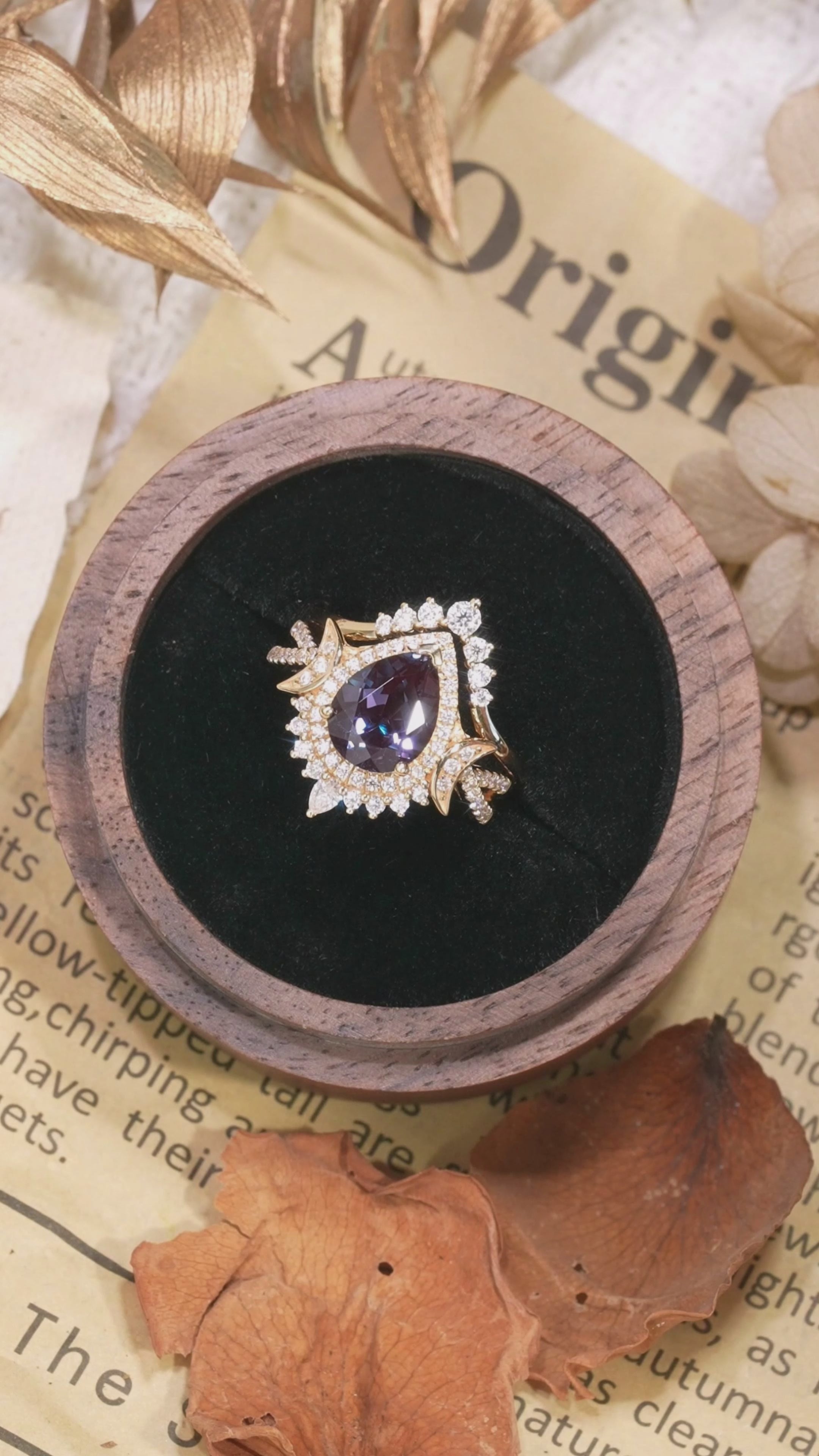 Unique Pear Shaped Alexandrite Engagement Ring Set Moissanite Cluster Wedding Band