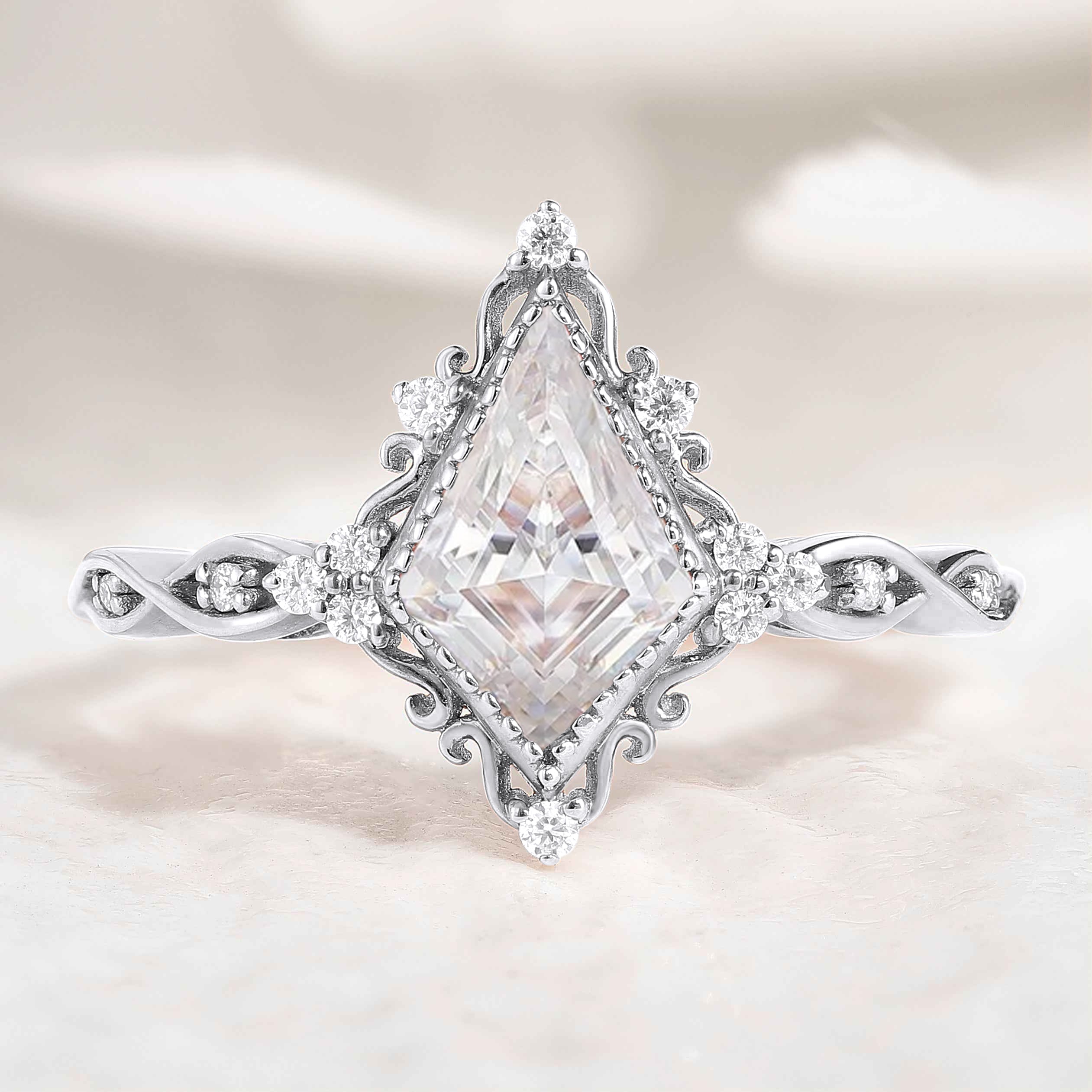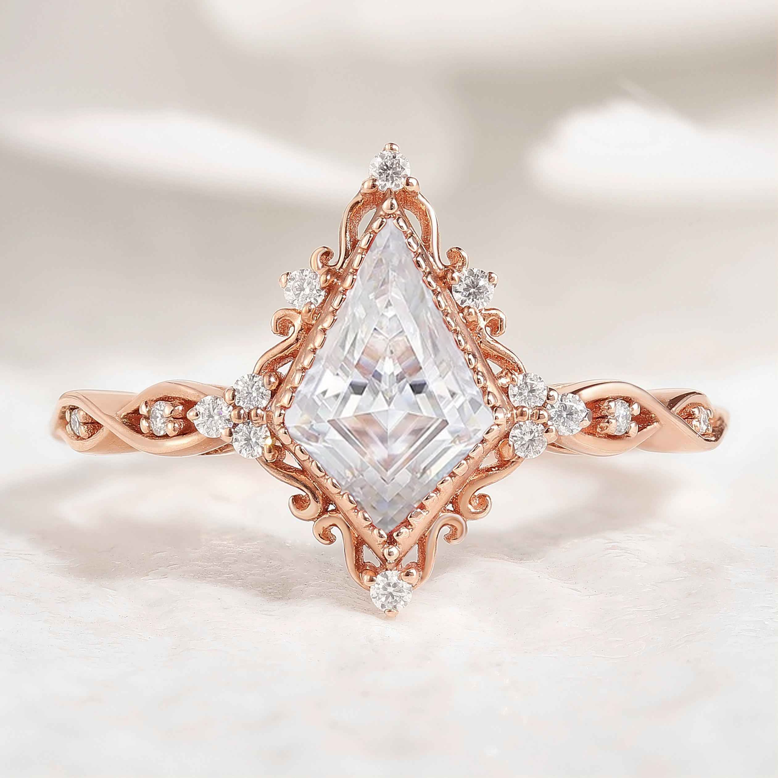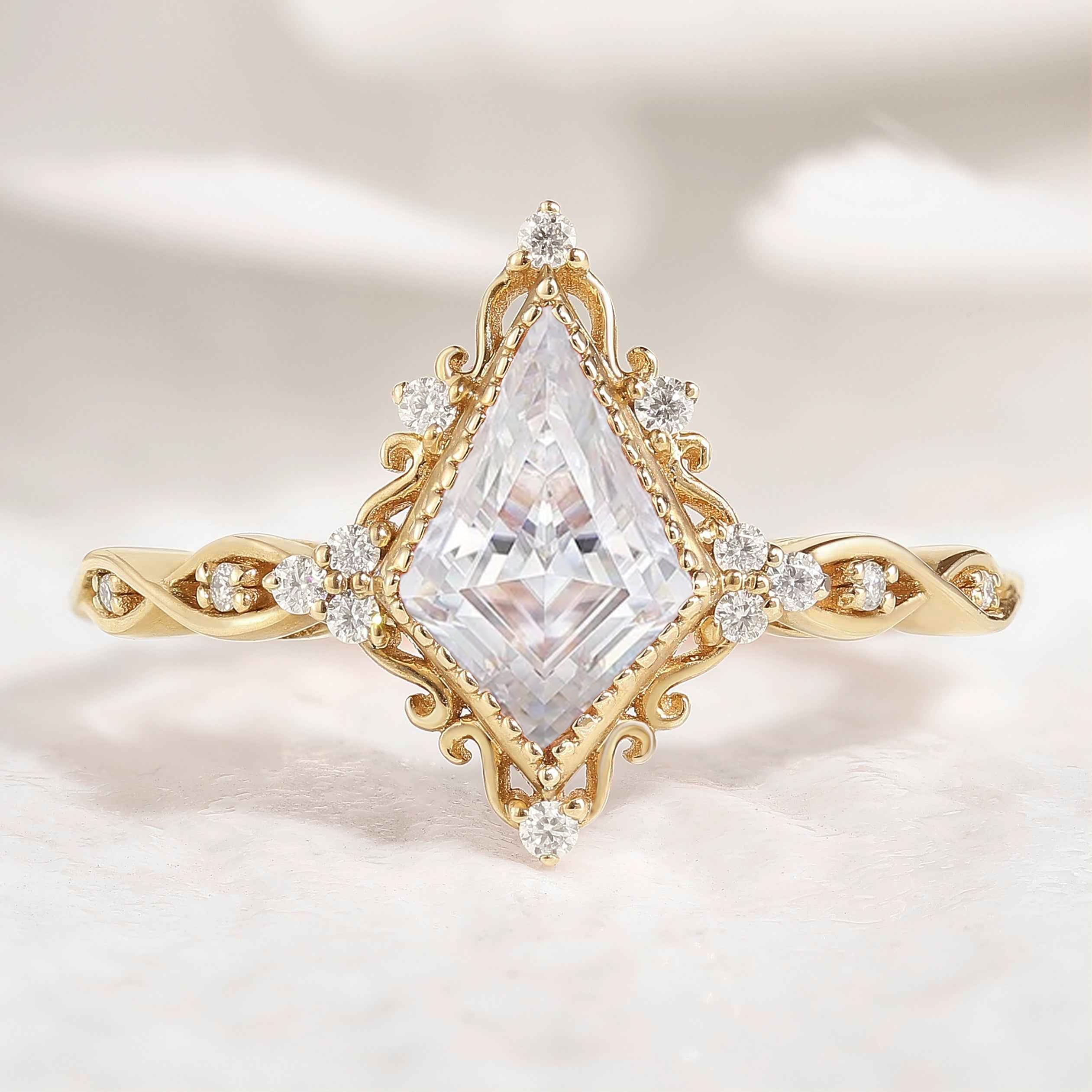 Vintage Kite Shaped Moissanite Engagement Ring Solid Gold Ring