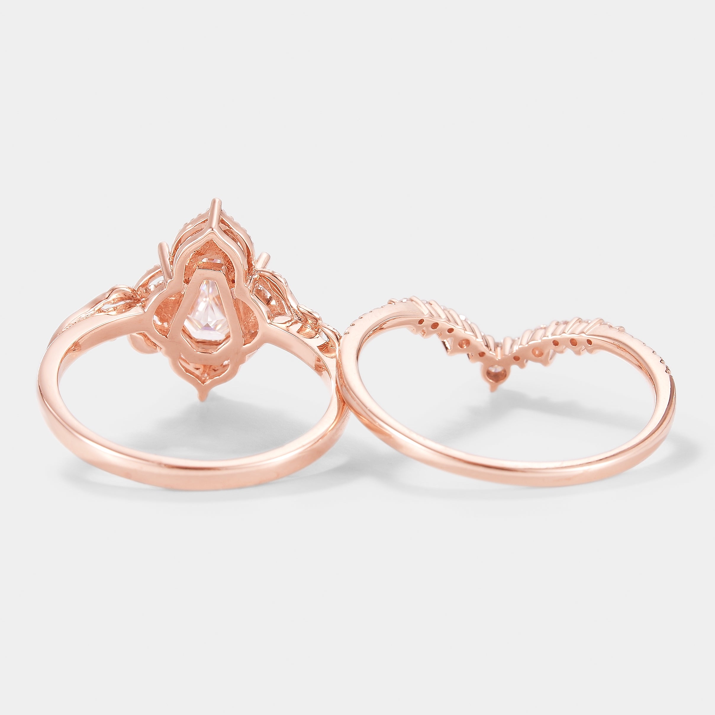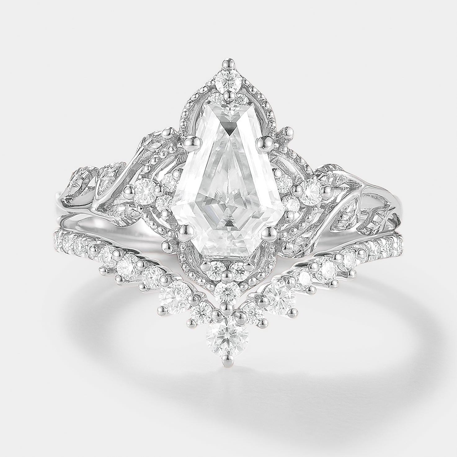 Coffin Cut Moissanite Leaf Engagement Ring Curved Wedding Band 2pcs