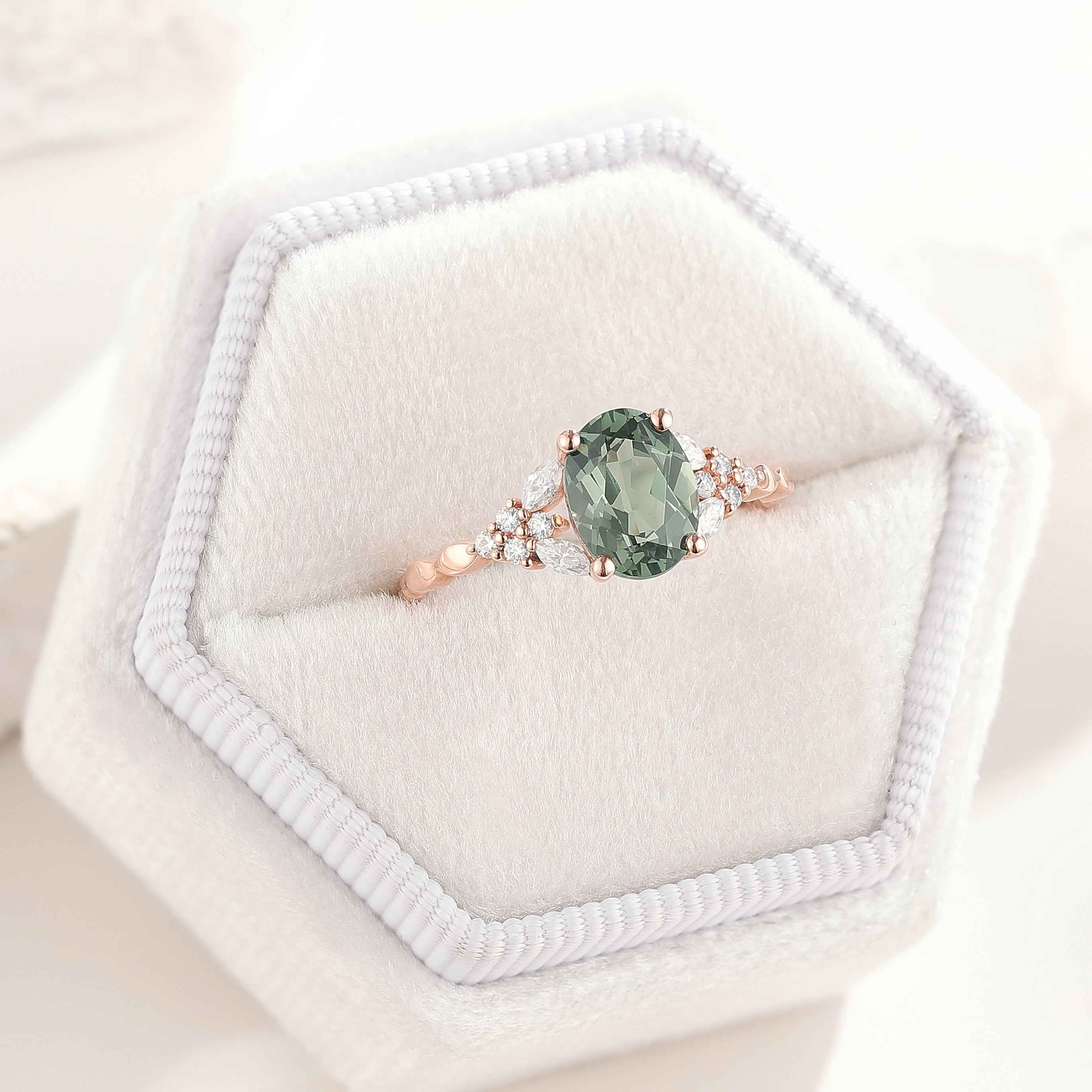 Gold Oval Cut Green Sapphire Engagement Ring