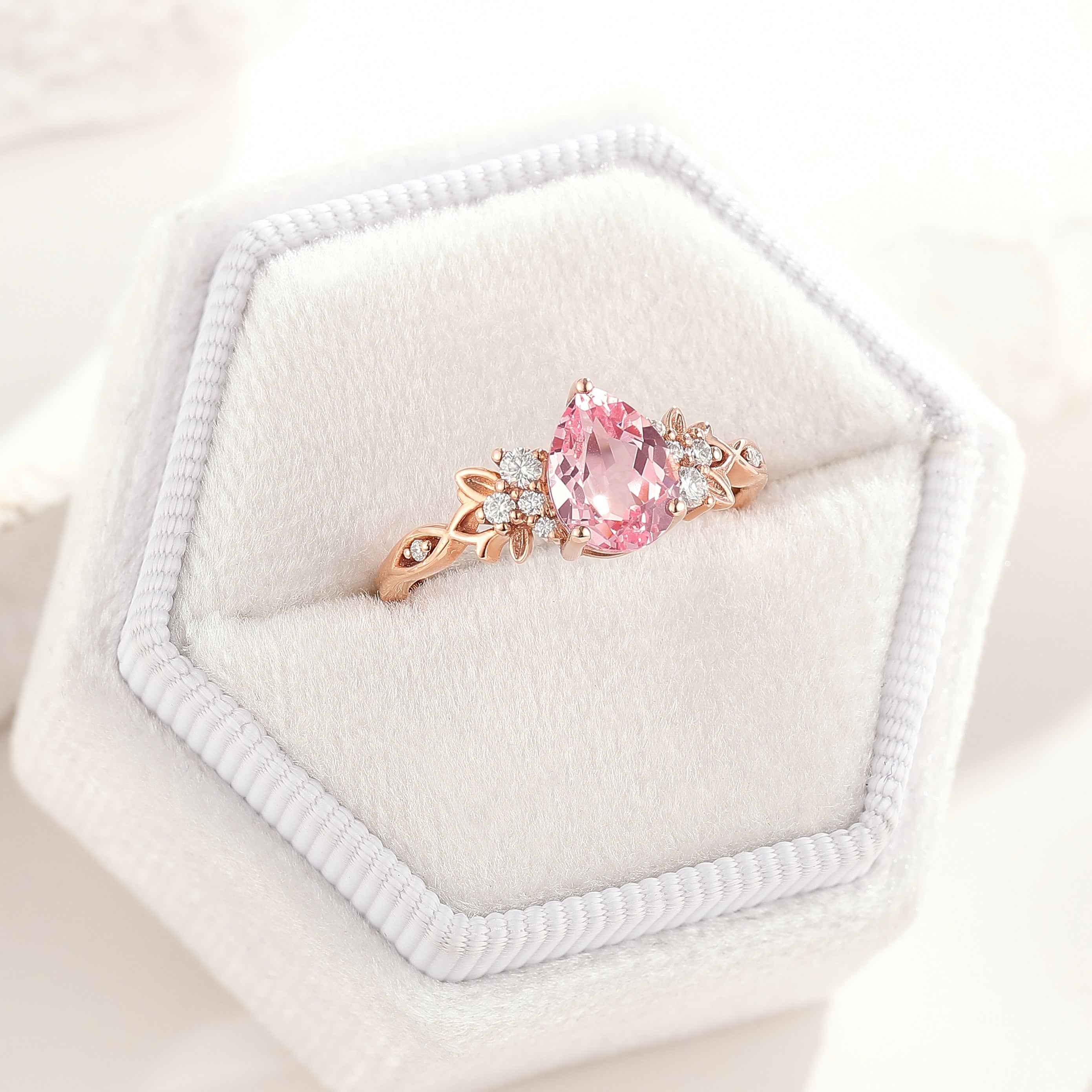 Natural Inspired Leaf Ring Pear Cut Padparadscha Engagement Ring