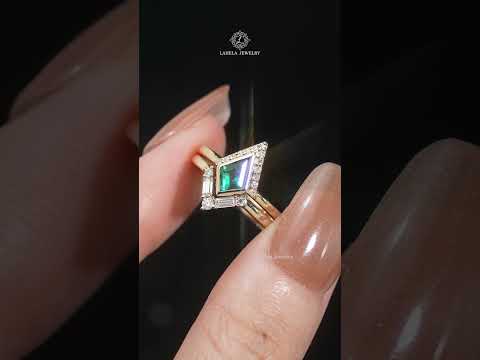 A unique kite-shaped Alexandrite shines with mesmerizing color shifts, set in an elegant design.