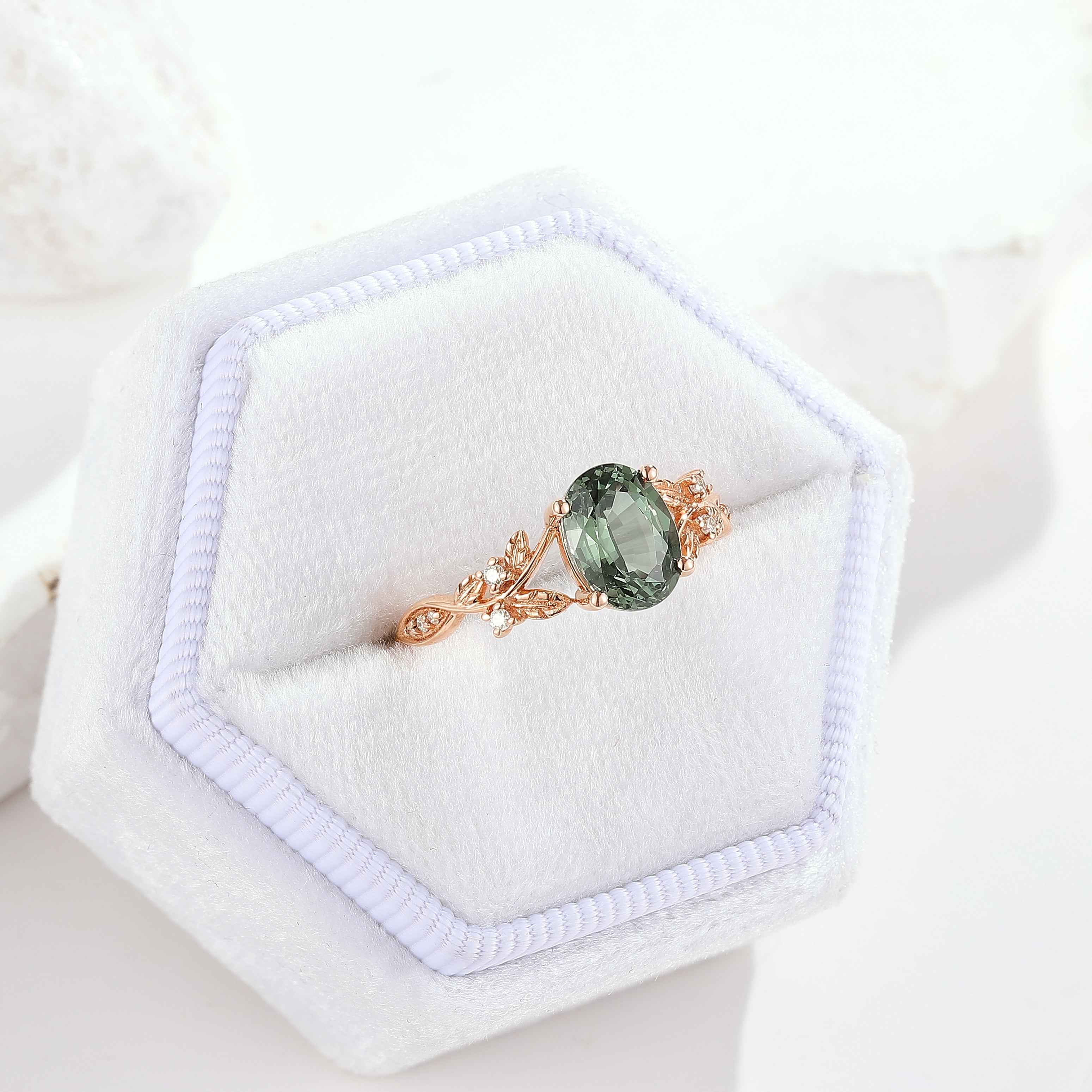 Unique Oval Cut Green Sapphire Engagement Ring In Rose Gold