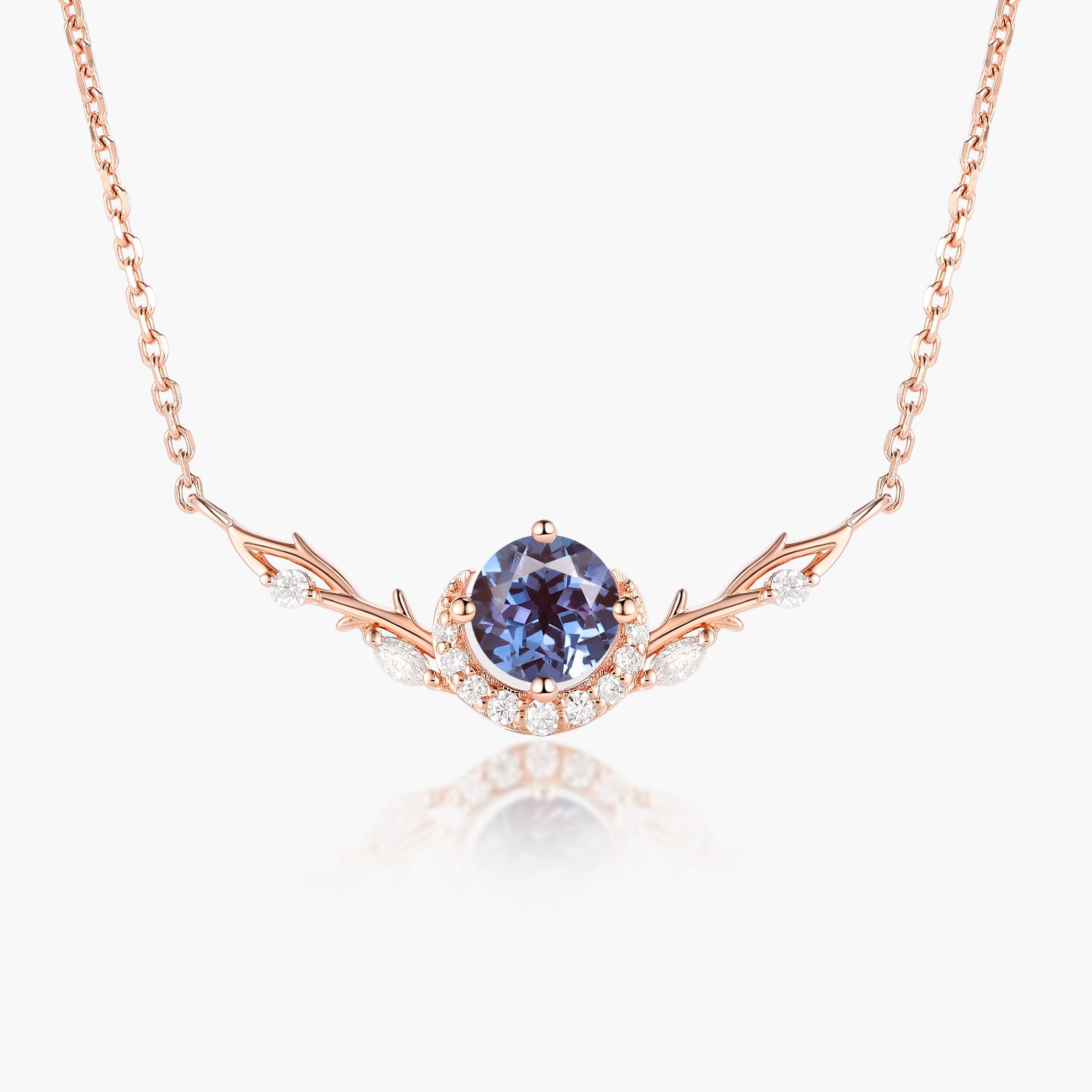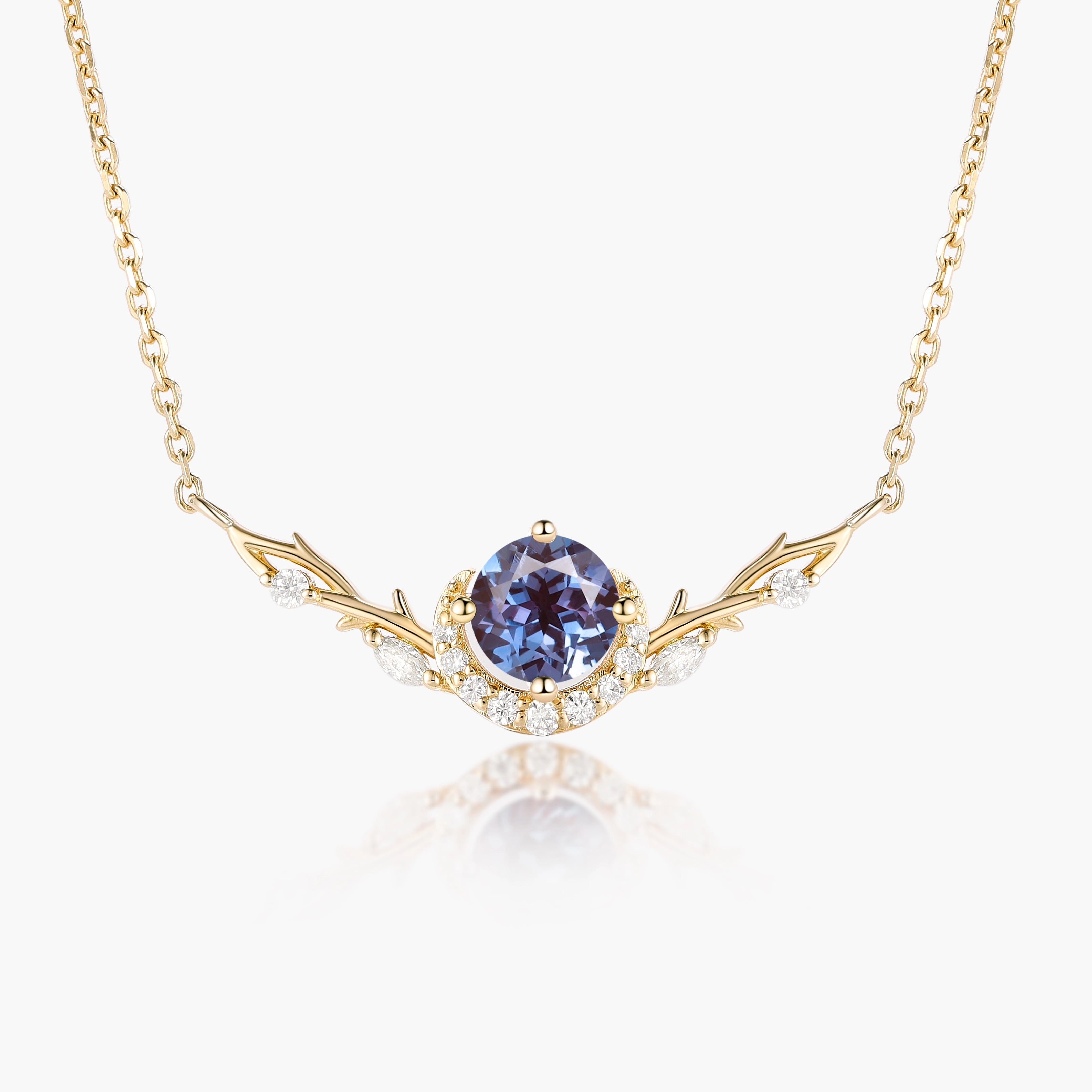Custom Oval Cut Alexandrite Forest Moon Necklace - Eirwen