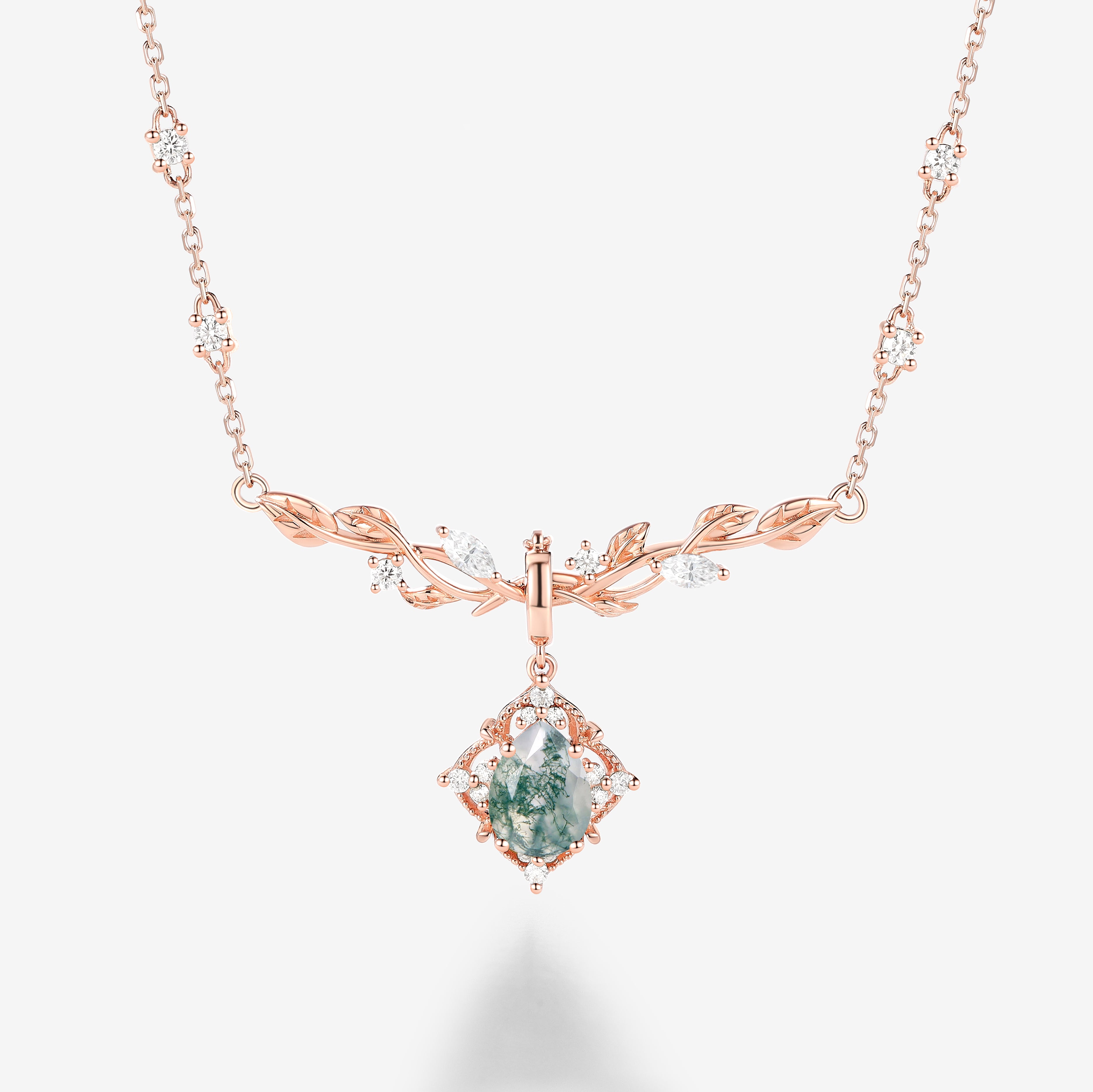 Nature Inspired Pear Cut Leafy Moss Agate Necklace