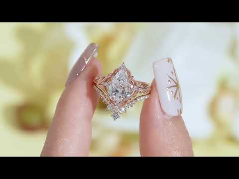 Pear Cut Lab Created Diamond Nature Inspired Leaf Engagement Ring Set 2pcs