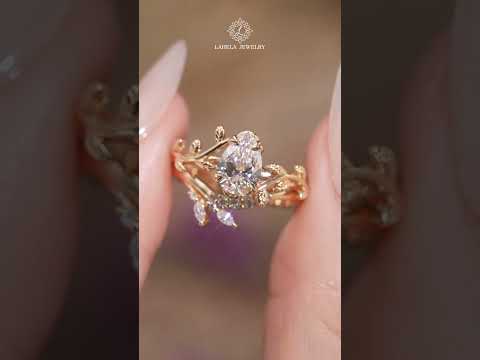 Pear Cut Lab Grown Diamond Engagement Ring With Leaves