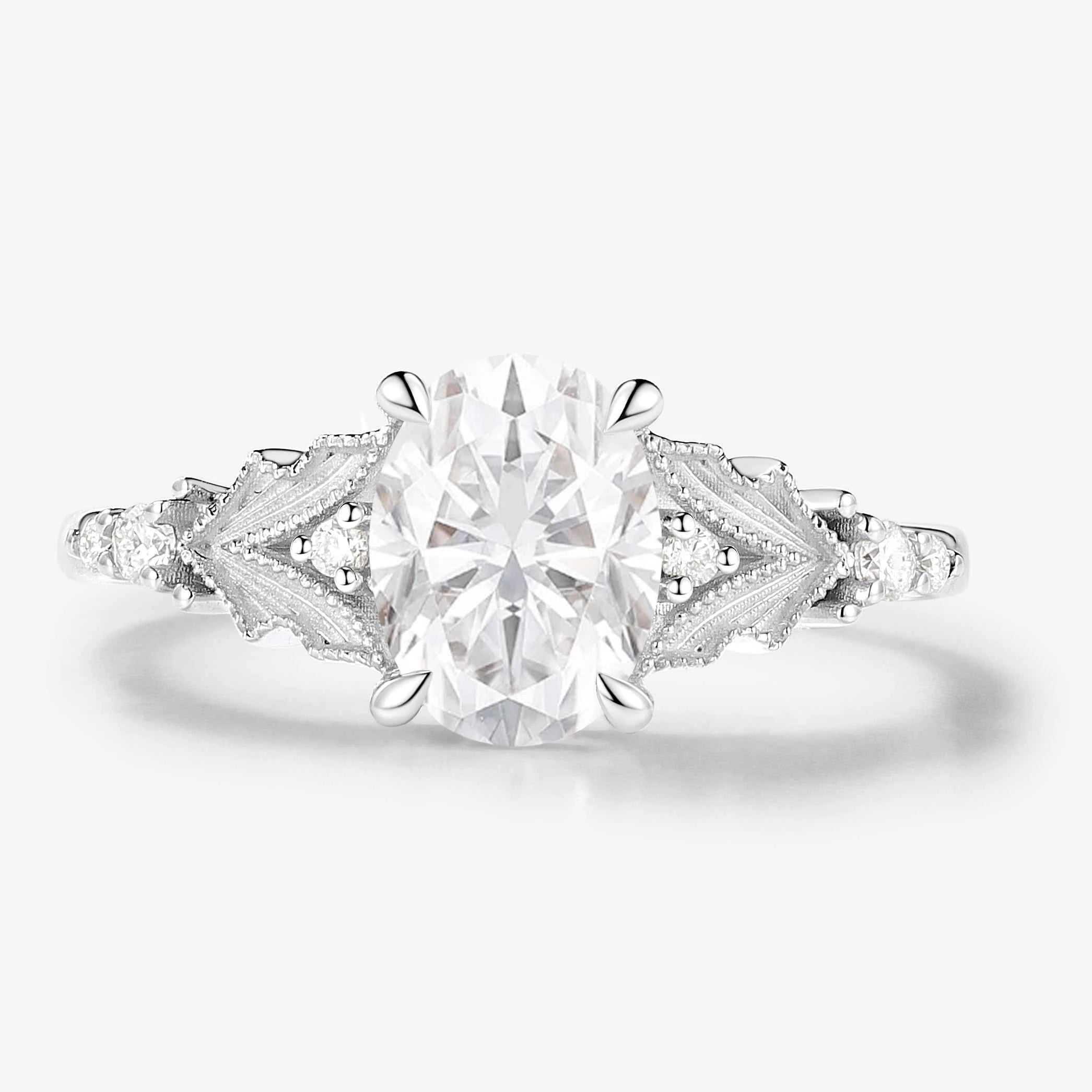 Elegant Dress-Lapel Inspired Bezel Oval Cut Moissanite Ring for the Bride