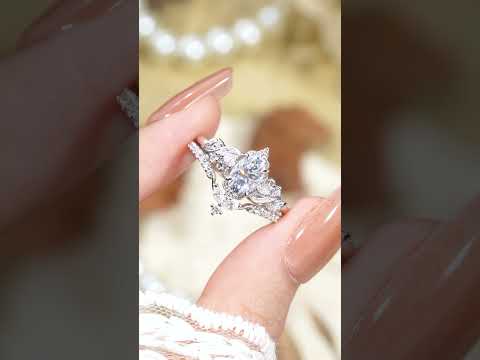 This Oval Cut Moissanite Ring Set features flowing leaf designs and a sparkling center stone, bringing a soft, natural elegance to your special moments.