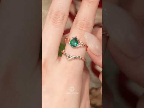 A pear-cut lab-created emerald pairs beautifully with graceful leaf accents in this enchanting two-piece bridal set. Designed to honor a love that feels natural, effortless, and meant to be.