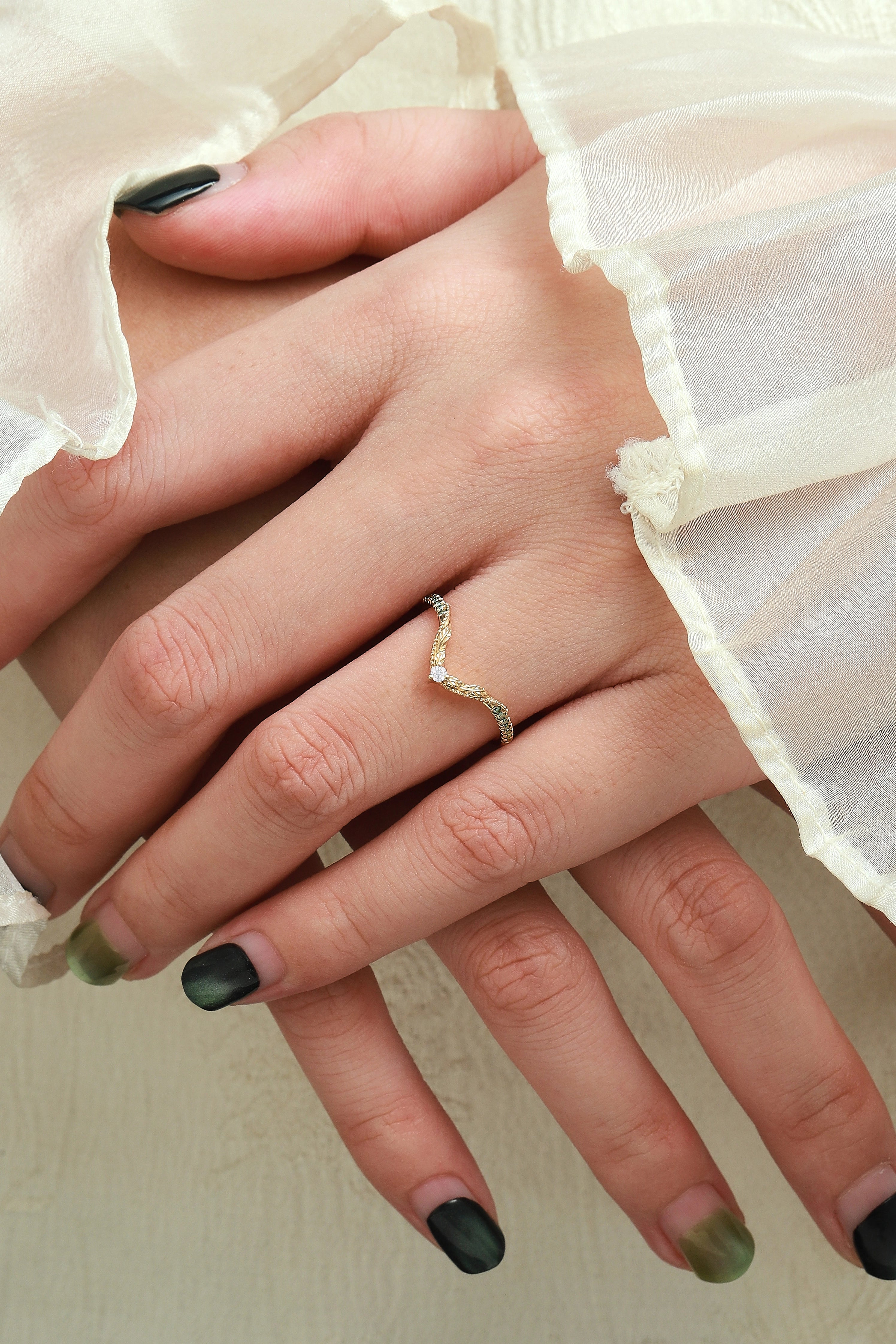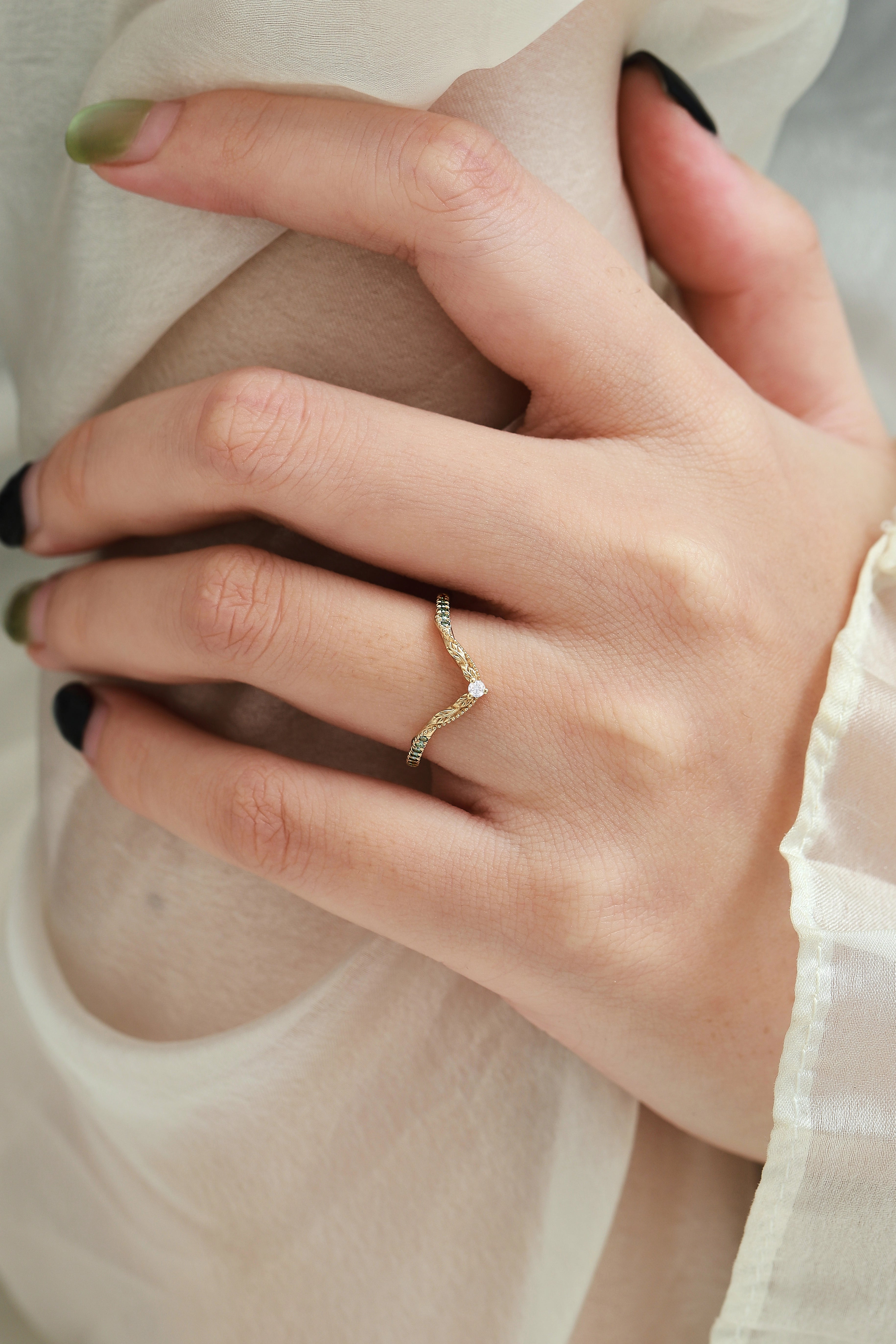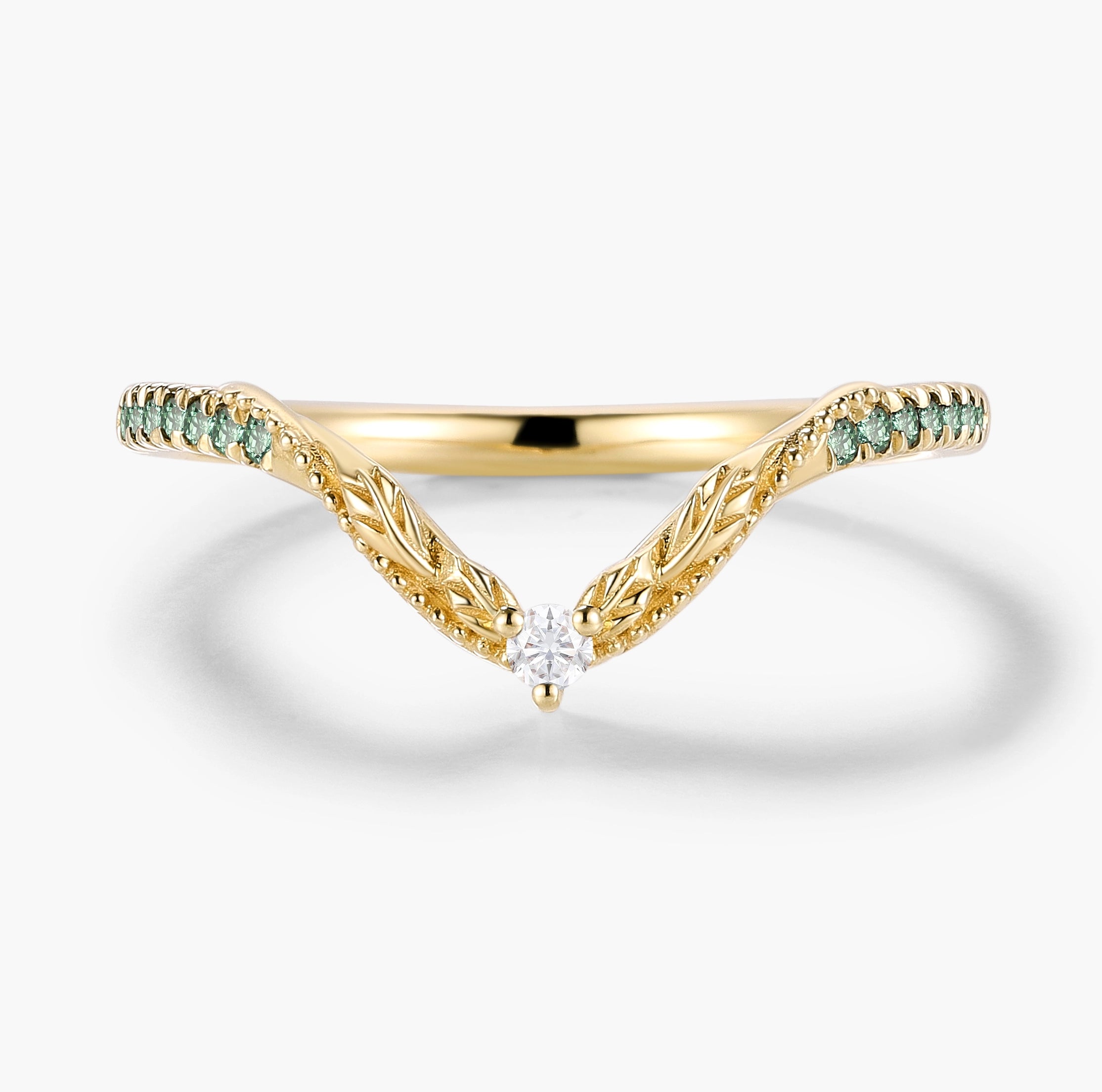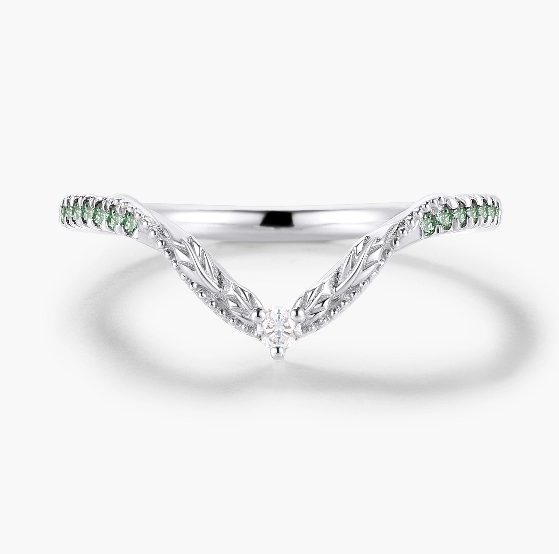 Vintage Nature Inspired Natural Green sapphire Moissanite Curved Wedding Band - Vivienne