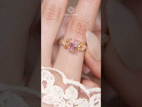 Nature Inspired Oval Cut Ring Pink Sapphire Floral Engagement Rings - Lilyvale