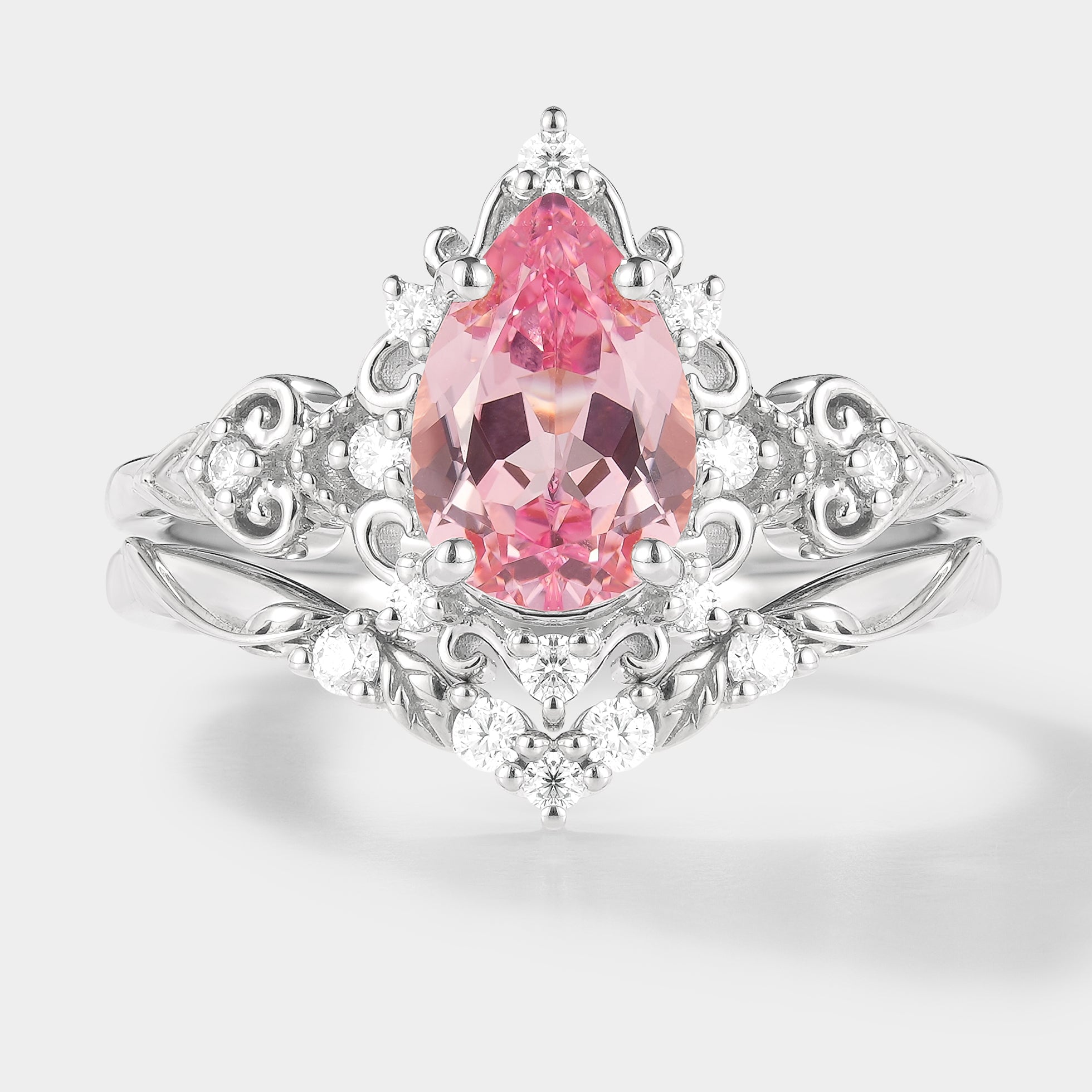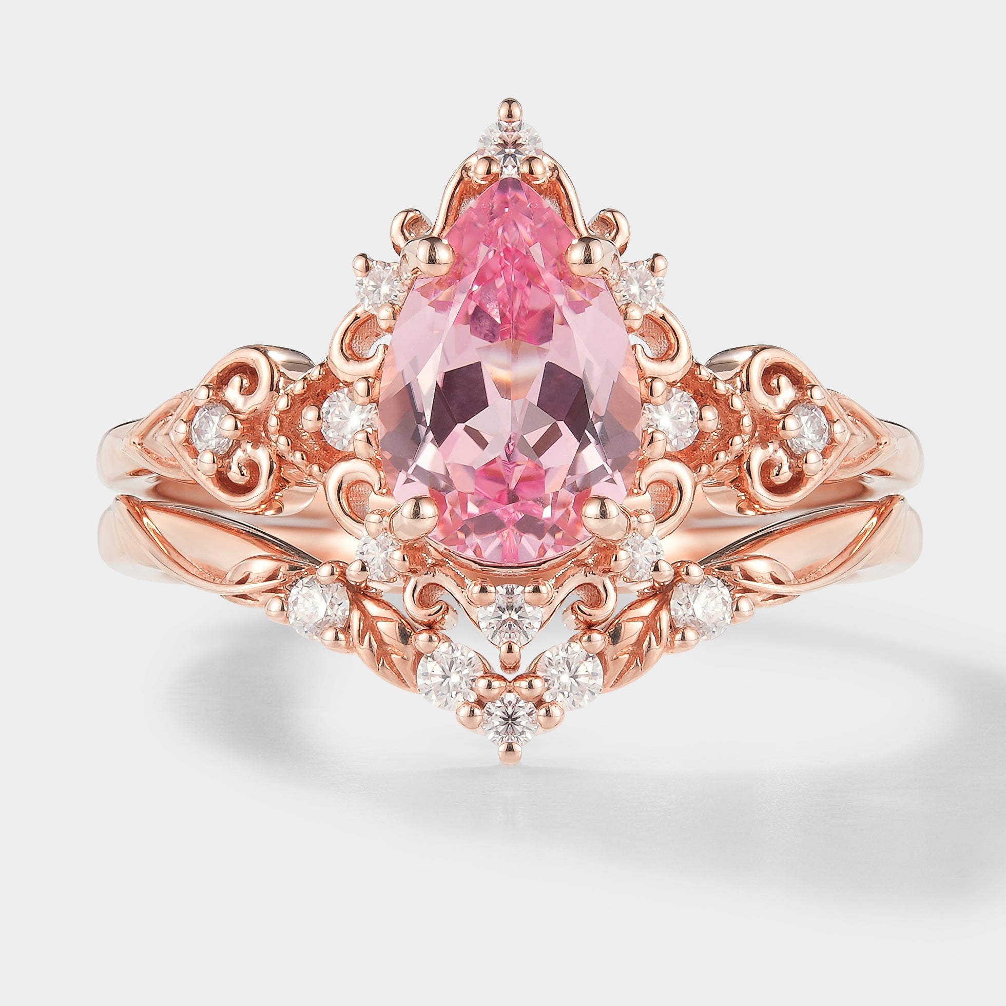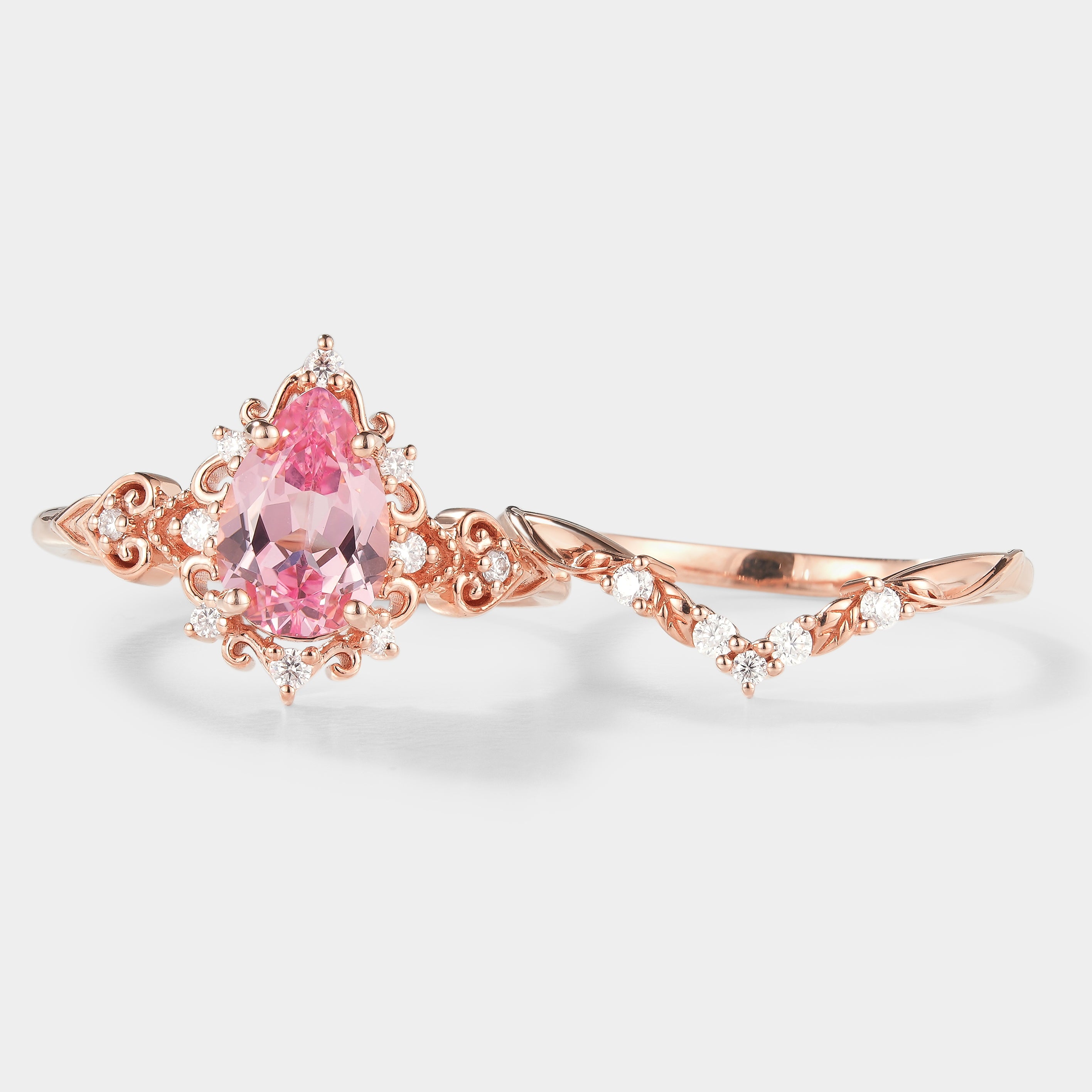 Antique Padparadscha Sapphire Ring Leaf Chevron Wedding Band