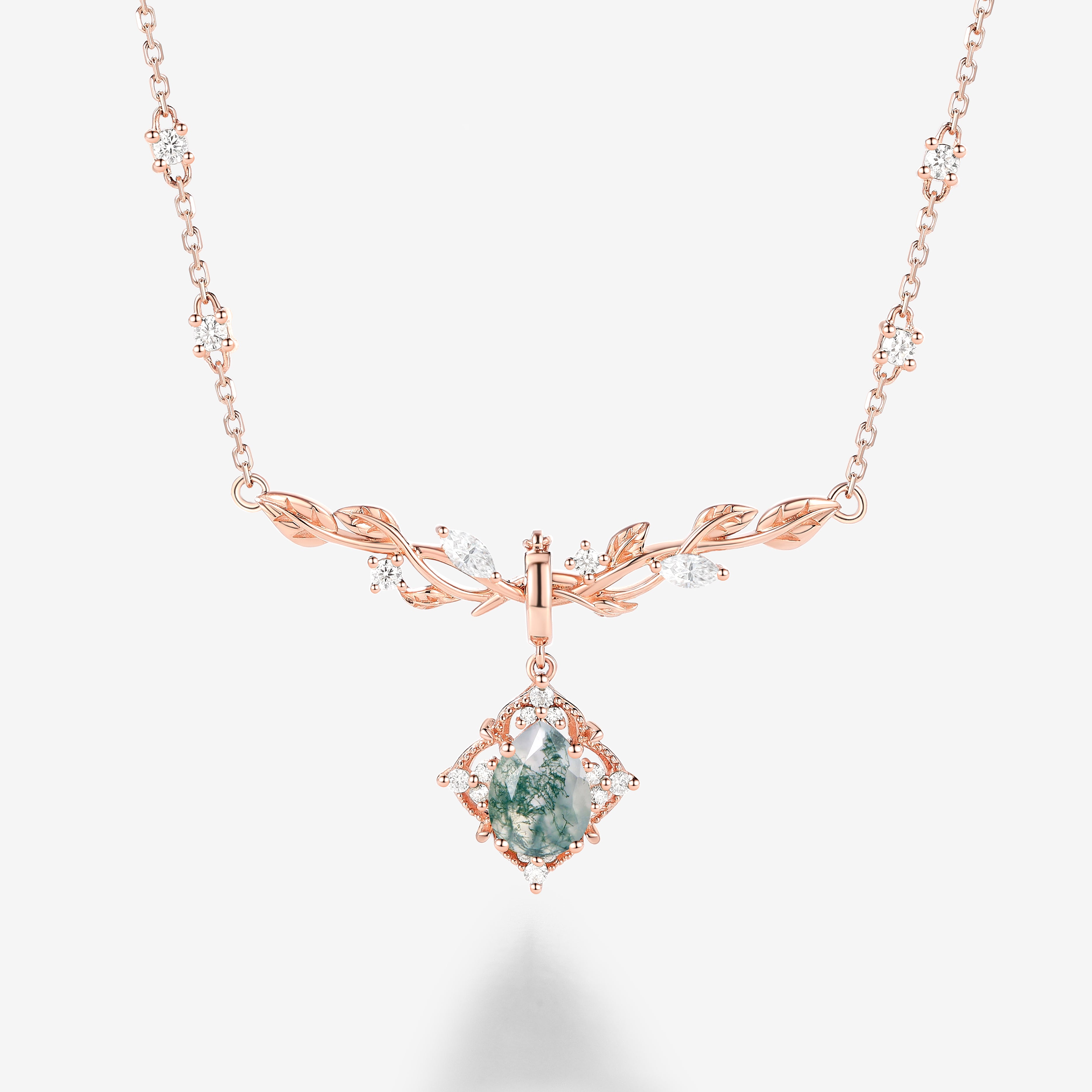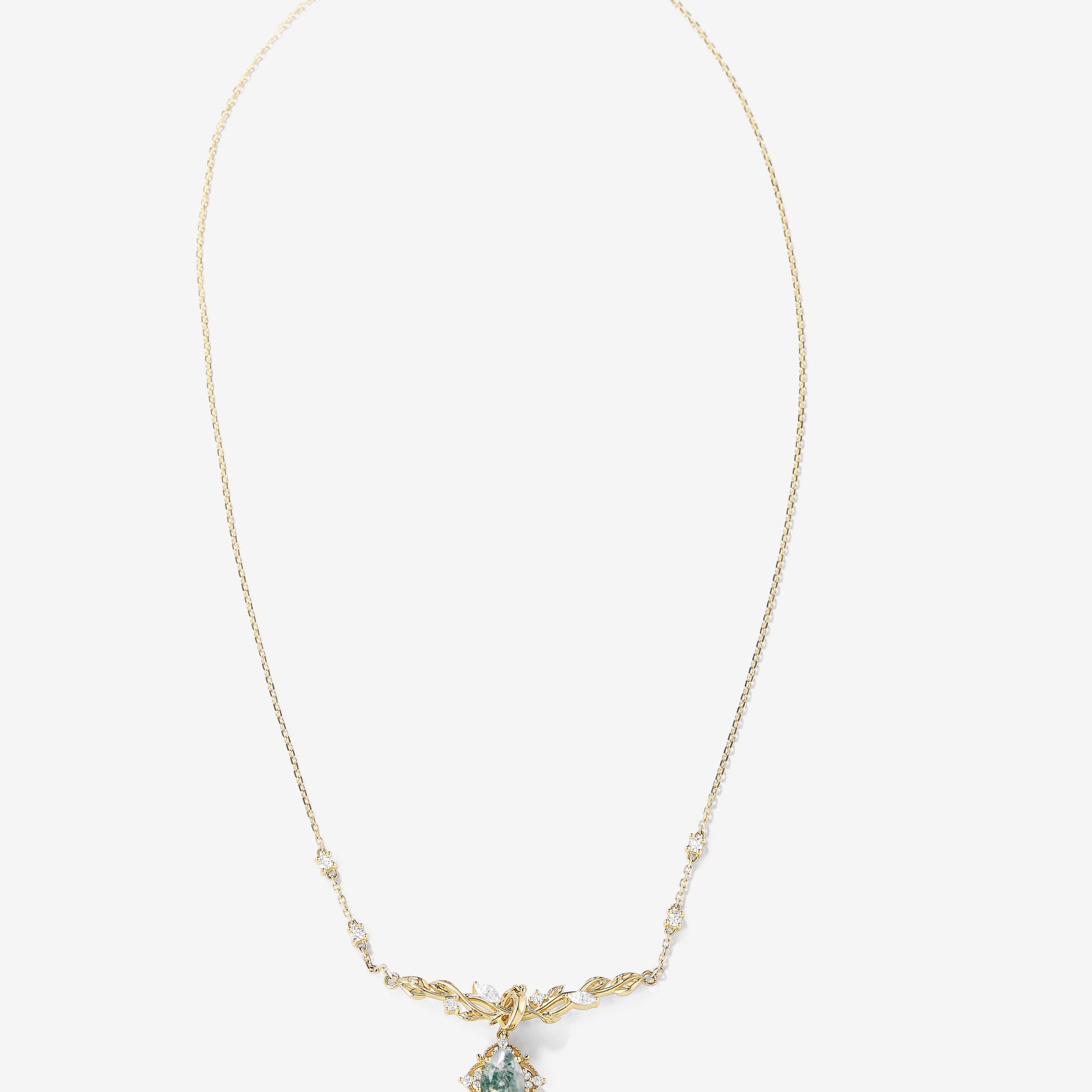 5 reviewsNature Inspired Pear Cut Moss Agate Leafy Engagement Ring
