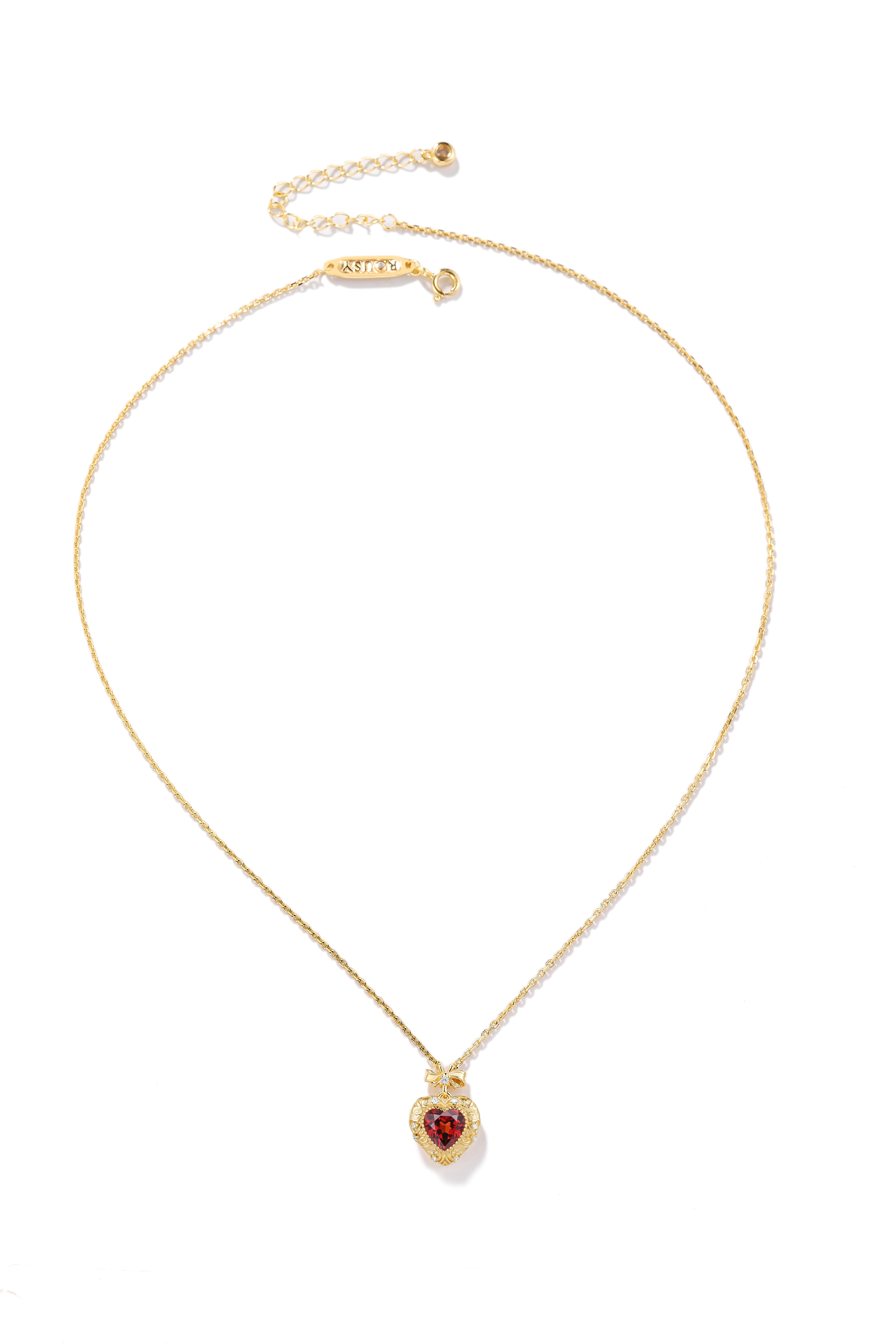 Leaf Inspired Bow Heart Shape Ruby Necklace Xmas Gift For Her